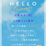 続きを読む8月6日(日)10時~ ご自分の心と体と仲良くつき合うために~その2~
